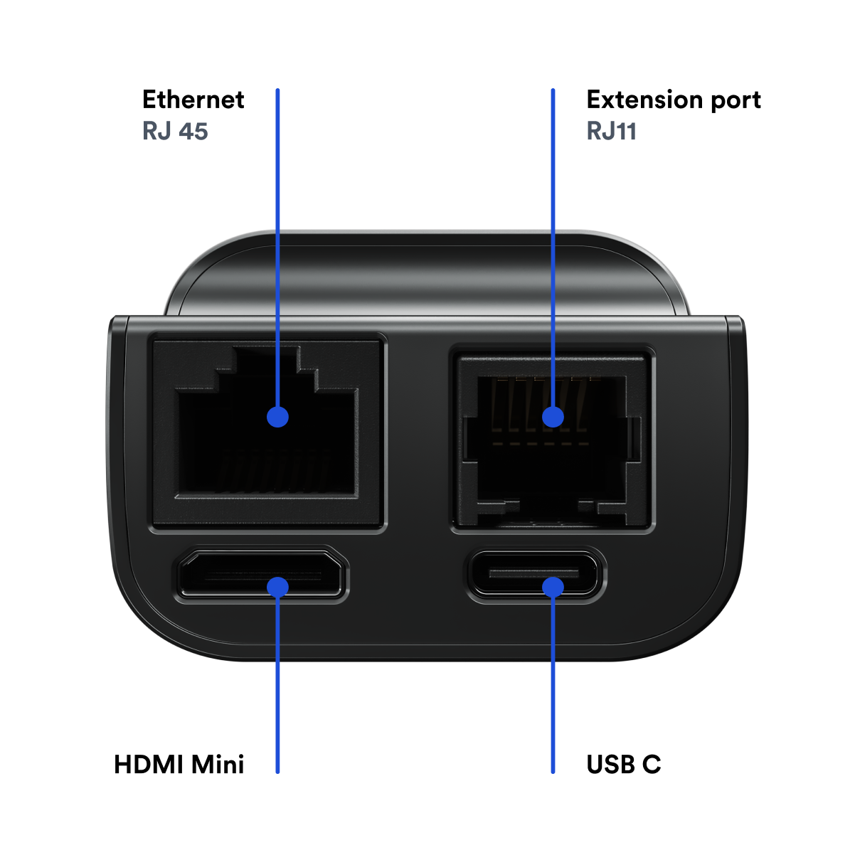 - Ports: Ethernet RJ45 (100Mbps), USB-C (USB 2.0 480Mbps), HDMI Mini, JetKVM RJ11 extension port